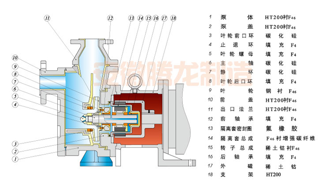 | ZMD系列自吸式磁力泵,集合了磁力泵的所有优良特性,且最大的优势即可以自吸,一般自吸高度可达2-4米,充 分结合了自吸泵和磁力泵的所有优点,既具有自吸功能,又取消了轴封,利用磁力偶合间接传动,完全消除了滴漏的现象。是输送易燃、易爆、易挥发、强腐蚀、强 渗透性高危化学介质最理想的选择。根据所输送介质的特性,如介质比重、腐蚀性等可选用不用材质的泵主轴材料,如输送氢氟酸和有机溶剂可选用无压烧结碳化硅 主轴或99.99%氧化铝陶瓷主轴。ZMD系列磁力驱动泵采用最新材料制成的隔离套具有高强度的力学性能,彻底消除了一般磁力泵具有的磁涡流现象。 ZMD系列磁力驱动泵采用独特的后拉式结构,整机过流部分只有5个部件总成组合而成,一人便可以很轻松地进行内部检修和零件更换,无需拆卸管道,大大方便了日常的检修和保养工作。 |