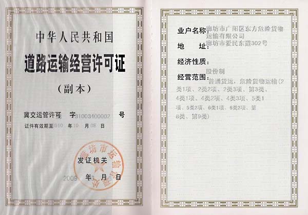 廊坊市广阳区东方危险货物运输有限公司是一家运输危险化学品的专业运输公司,拥有危险品运输车和罐车10多台,可承接各种液体化工和固体化工品的运输任务。
