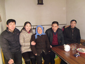 赵丙丑的家人早早的就出来迎接了,80多岁的母亲身边两个儿媳妇细心的照料着,重孙子、重孙女围着老人很是亲热。