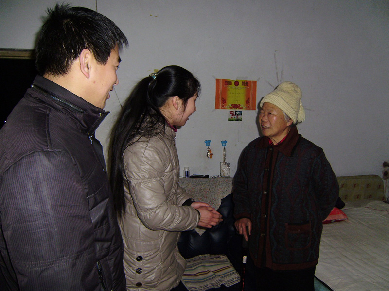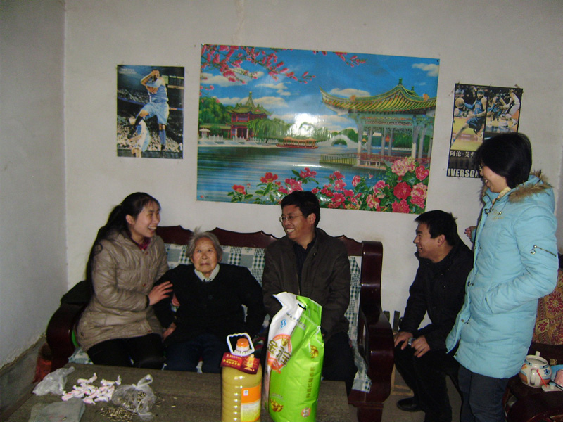张洪涛的母亲看上去特别面善,精神也非常好,她看到我们非常高兴,热情的招待了我们。庞友民、程英谦经理向她询问了生活情况并提醒老人多注意身体。