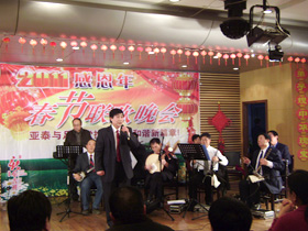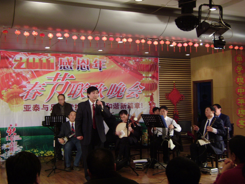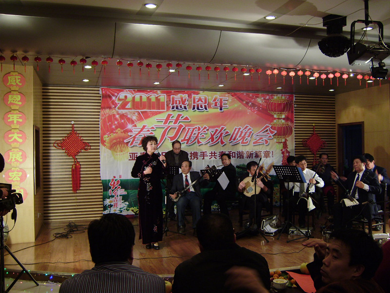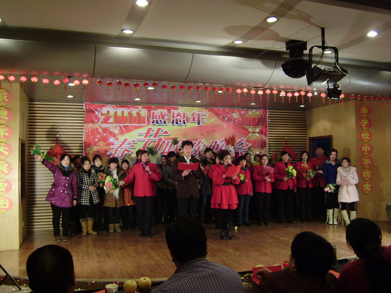 为了丰富职工业余文化生活,腊月十六请到了安国、蠡县足福堂、衡水京剧协会、高董事长的朋友等京剧票友与我们亚泰的精英一起联欢迎春节。在座的观众用阵阵激励的掌声送给每一位演员、导演、台后的工作者,送给高董事长和张总经理。高董事长铿锵有力的演唱使在座的观众欢呼起来,掌声不断,叫好声不断。亚泰的职工在为高董事长的才艺喝彩,在为有这样一位好的领导喝彩。晚会闭幕时张总怀着一颗感恩的心,感谢足福堂及京剧协会、京剧票友的到来。希望在以后的日子里亚泰人与这些组织建立深厚的友谊,携手为社会发展做贡献。联欢会后,按照公司领导的安排为全体演职人员发了奖品。