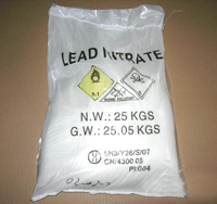 white crystalline, relative density 4.53(20℃), easily soluble in water, liquid ammonia, light dissolve in ethyl alcohol, not dissolve in concentrated nitrate acid, solubility 56.5g/100g water (20℃). Dry lead nitrate decompose at 205-223℃. Damp lead nitrate decompose at 100℃, first become Pb(NO<sub>3</sub>)<sub>2</sub> . PbO, go on heating, then become PbO. It is strong oxidant, putting together with organics will lead it burning, noxious. |